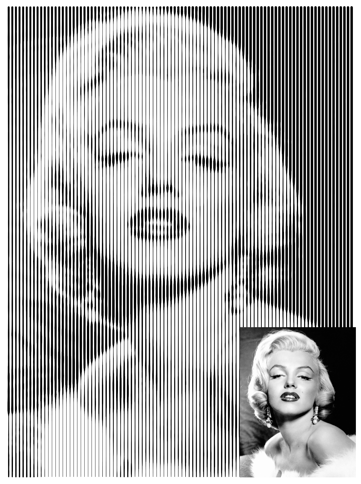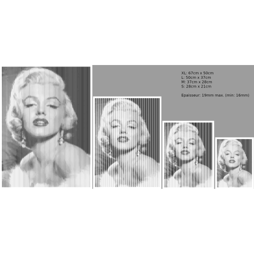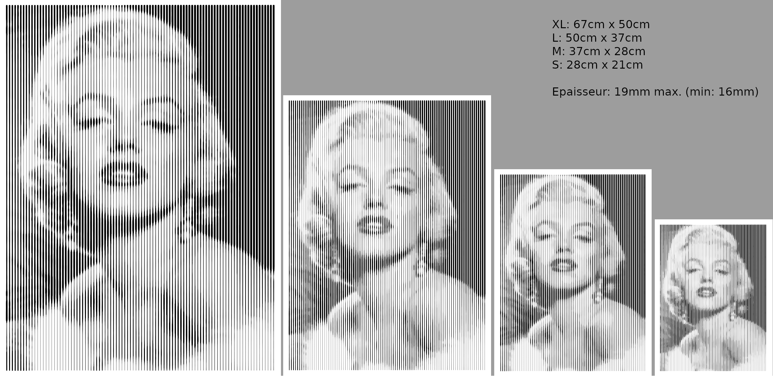 Cette gravure de photo sous forme de rayures donne un effet saisissant au tableau dont les détails apparaissent avec la distance ou l'angle de vue.