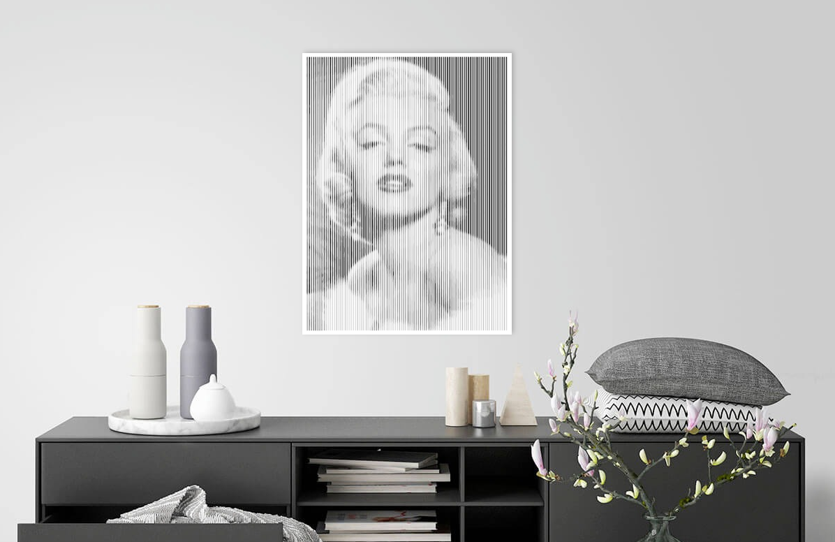 Ce portrait de Marilyn, icône intemporelle de la beauté, apportera modernité, design et glamour à votre intérieur ou à la déco de votre commerce.